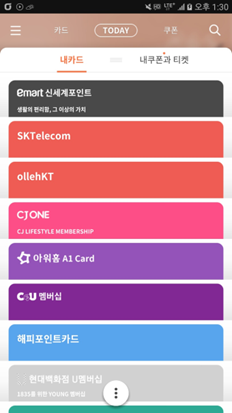 멤버십 카드, 쿠폰, 지불결제 수단(신용카드, 상품권)의 혜택을 누릴 수 있는 모바일 지갑 Application